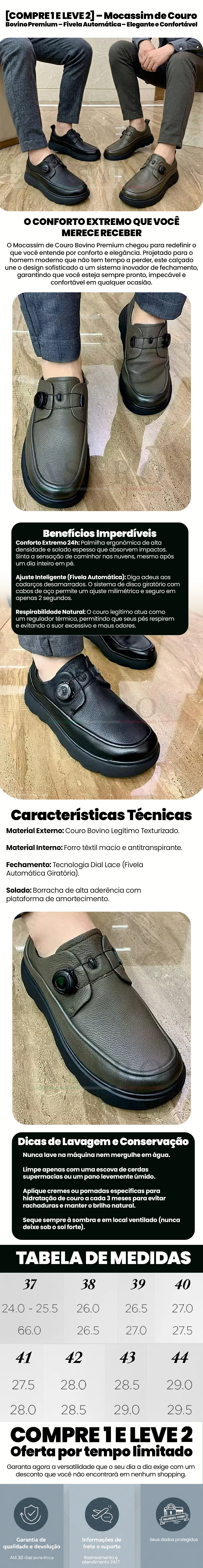 [COMPRE 1 E LEVE 2] – Mocassim de Couro Bovino Premium – Fivela Automática – Elegante e Confortável