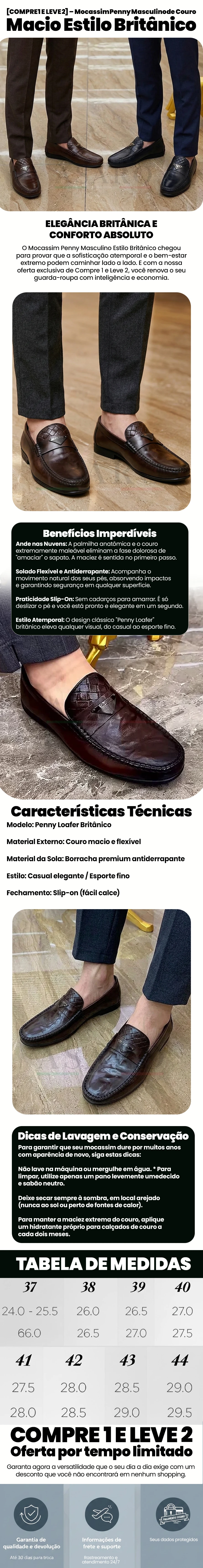 [COMPRE 1 E LEVE 2] – Mocassim Penny Masculino de Couro Macio Estilo Britânico