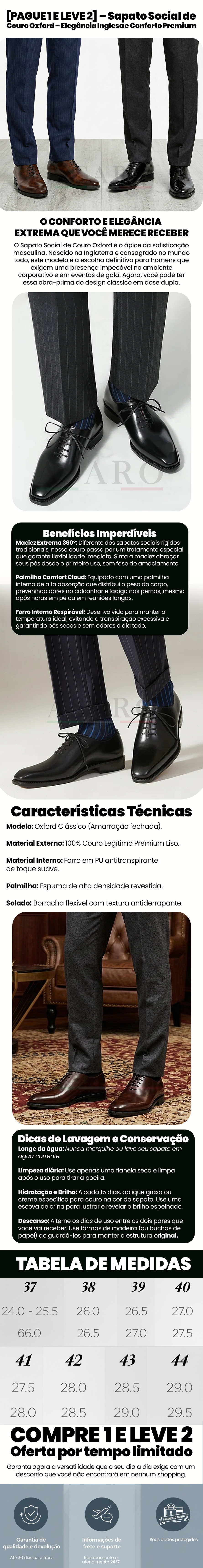 [PAGUE 1 E LEVE 2] – Sapato Social de Couro Oxford – Elegância Inglesa e Conforto Premium
